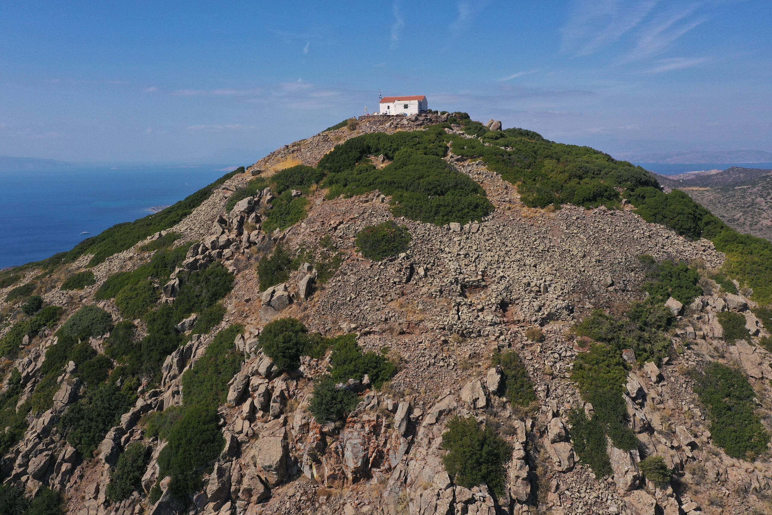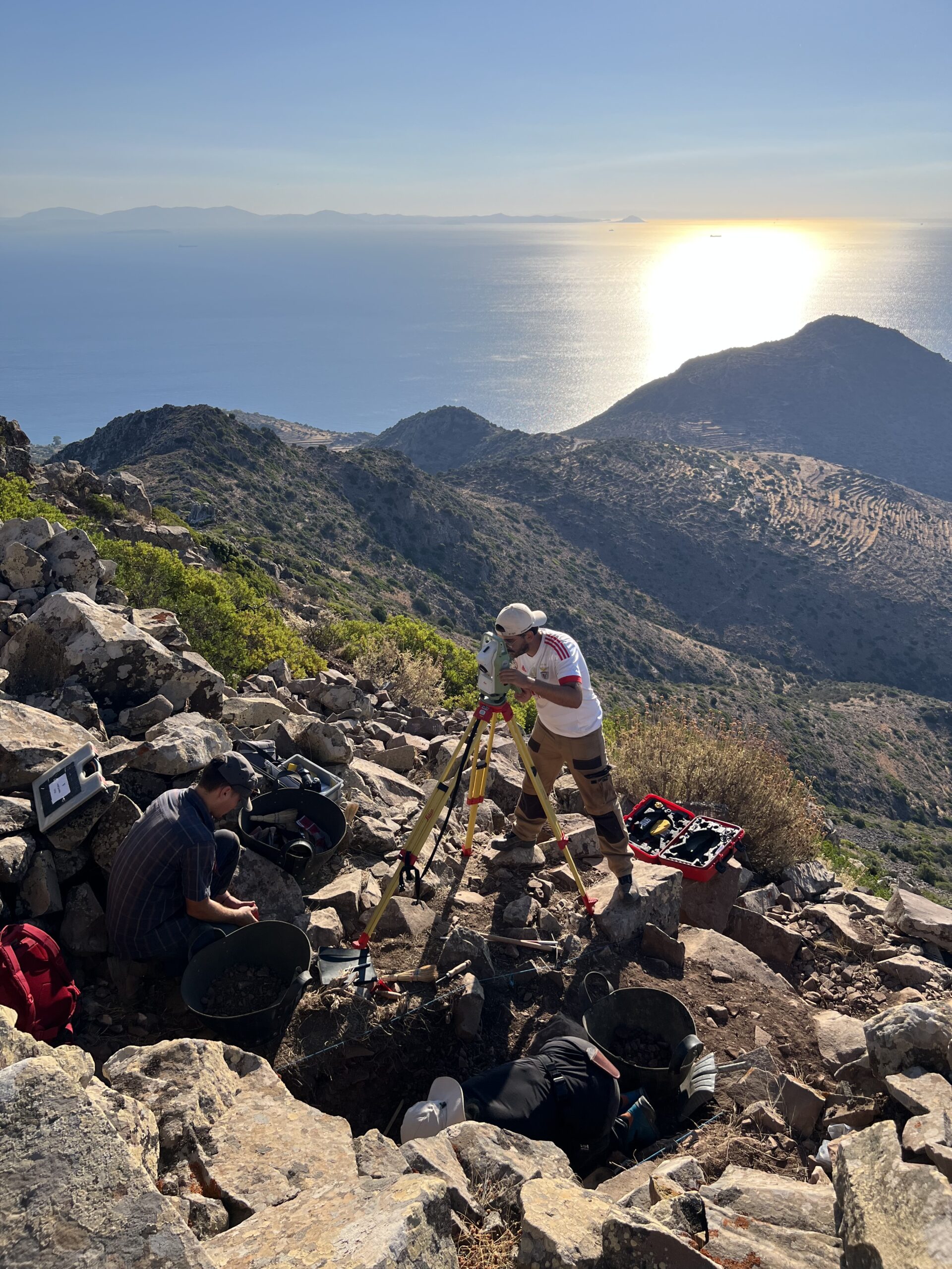 En 2025, l’équipe gréco-suisse a mené une campagne de fouille au sommet de l’Hellanion Oros, sur l’île d’Égine, accompagnée de deux semaines de prospection intensive dans ses environs. Ces recherches ont mis en lumière la fréquentation de la région du Néolithique Final à nos jours, avec une majorité de vestiges de la phase mycénienne. Deux nouvelles fortifications ont été identifiées sur des promontoires de la côte sud, et, juste sous le sommet de l’Hellanion, un complexe monumental inédit a été partiellement nettoyé et topographié. Un premier sondage y a confirmé sa datation à la période mycénienne.